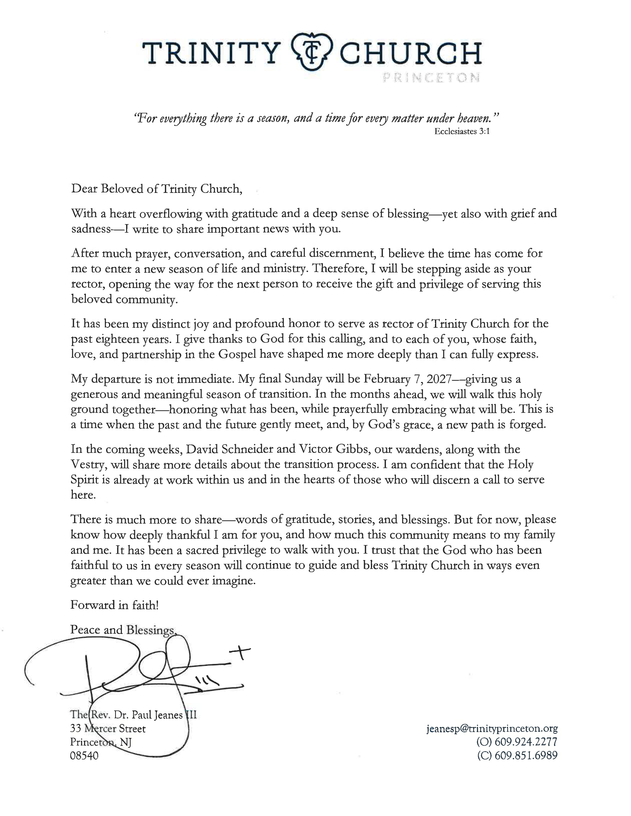 April 25, 2026 Trinity Communications An Important Word from the Rector April 25, 2026 Trinity Communications Trinity Communications